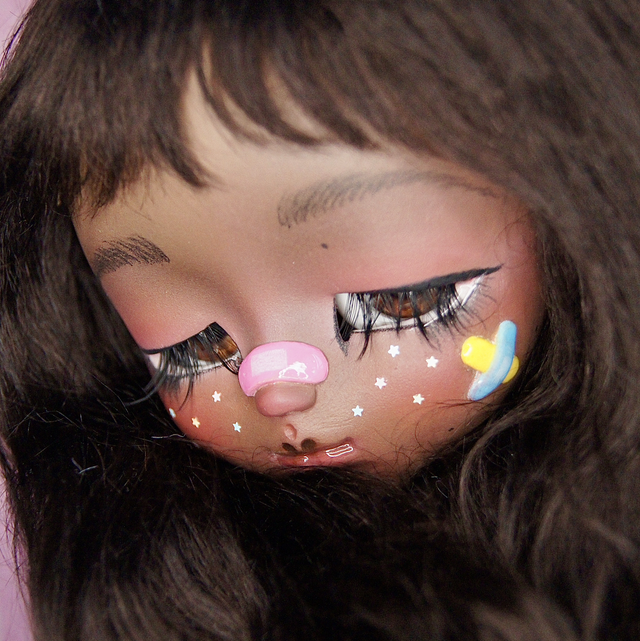 Bloomy est une poupée Pullip réalisée à partir du modèle Luna. Elle a été entièrement sculptée et maquillée, avec un regard mi-clos (paupières fixes). Ses pansements font partie de son style et ne peuvent pas être retirés.Les eyechips sont également réalisées par moi-même.