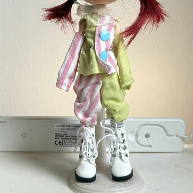 Pièce unique réalisée à partir d’un Mio Kit de chez Groove. Chaque détail a été customisé à la main : maquillage, sculptures, yeux et ailes.